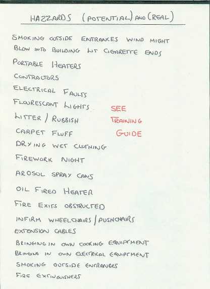 SEE TRAINING GUIDE FOR MORE INFO FIRE PROCEEDURE, FIRE SAFTEY